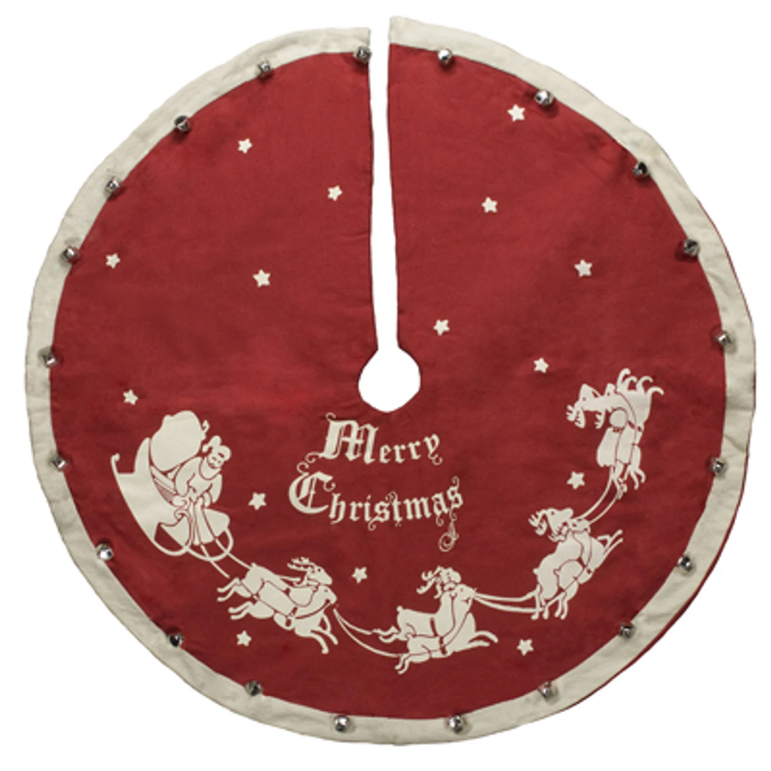 This 24″ vintage tree skirt is perfect for your small Christmas tree. Use with your tabletop or feather tree to add the perfect vintage feel. Made of fabric. Made by Primitives by Kathy. Item number 16556.