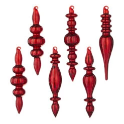 Raz 6.5″ Box Of Red Finial Glass Christmas Ornaments 4122819