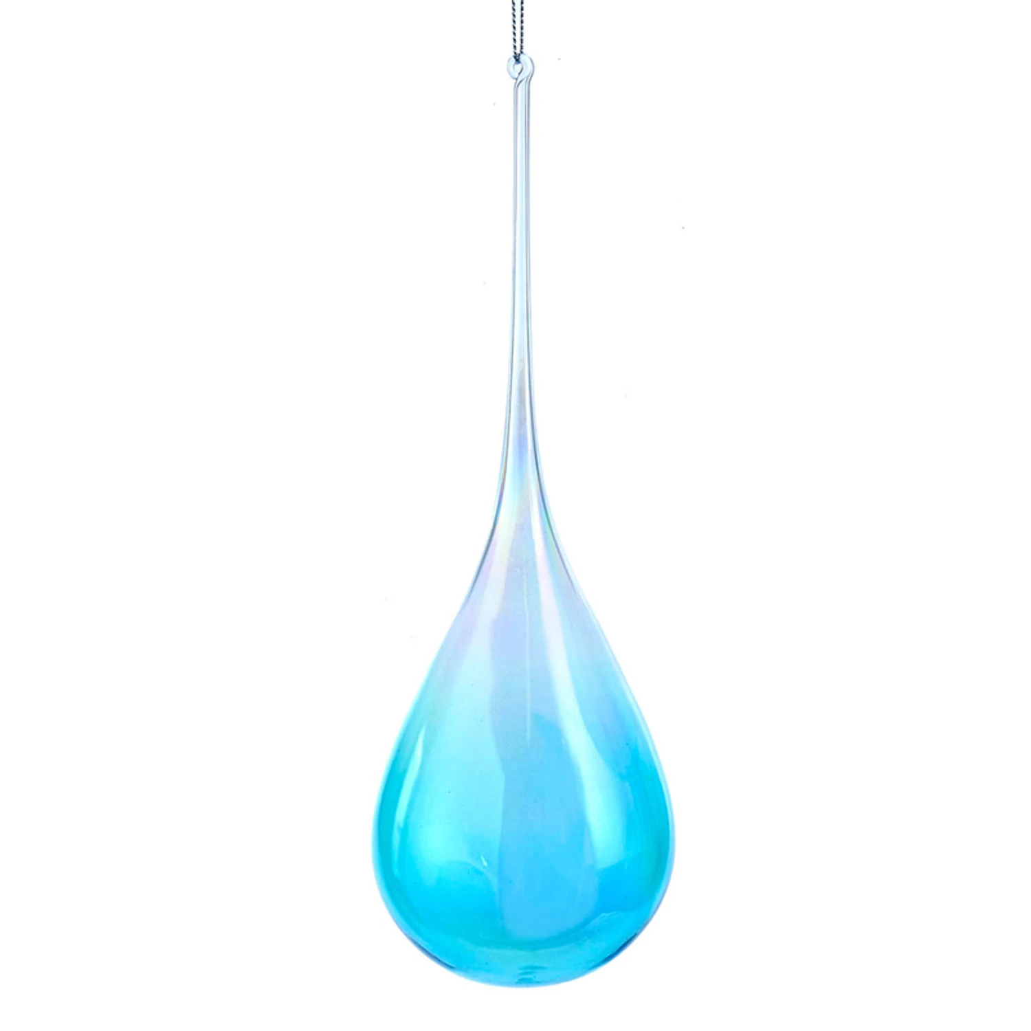 Brighten up your tree with these stunning blue drop ornaments! They resemble a fresh fallen rain drop or the bright blue of the ocean! Each sold individually. Made by Kurt Adler. Made of glass. Dimensions: 5″. Item #: D3554