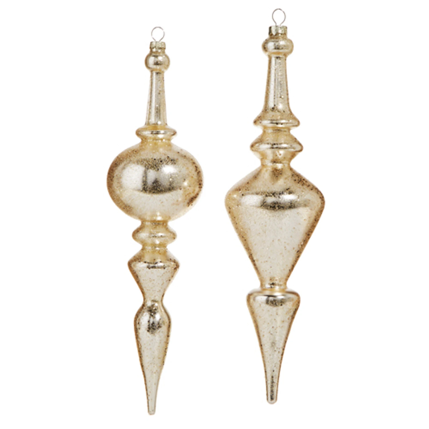 Add something gold to your decor with these gorgeous large finials! Each one is coated in a fine texture! Each sold individually OR as a set of 2. Made by Raz Imports. Made of glass. Dimensions: 12″. Item #: 4324554