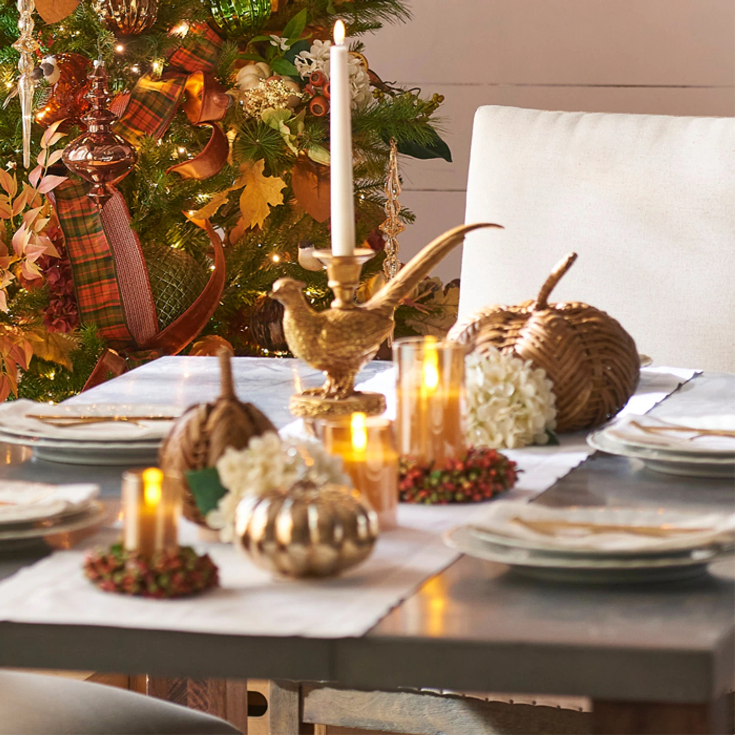 These cozy lil pumpkins are sure to look fabulous on your table setting, coffee table, or mantle this fall! Each one is made of intertwined rattan with a tall stem! Each sold individually. Made by Raz Imports. Made of rattan and metal. Dimensions: 5″ D X 6.5″ H or 9″ D X 8.5″ H. Item #: 4321044 or 4321045