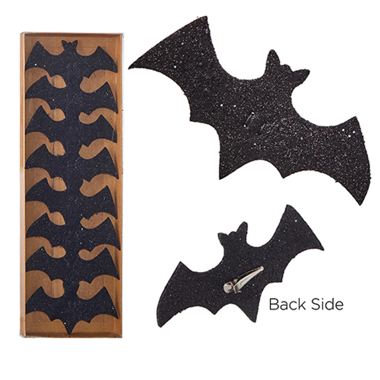 Add these adorable bats all over your home this spook season! You can clip them in trees, wreaths, or anywhere that needs them! Each one os covered in black glitter and has a tiny silver clip on the back. Made by Raz Imports. Made of plastic. Box comes with 8 bats, each bat is 5″. Item #: 4206786Â